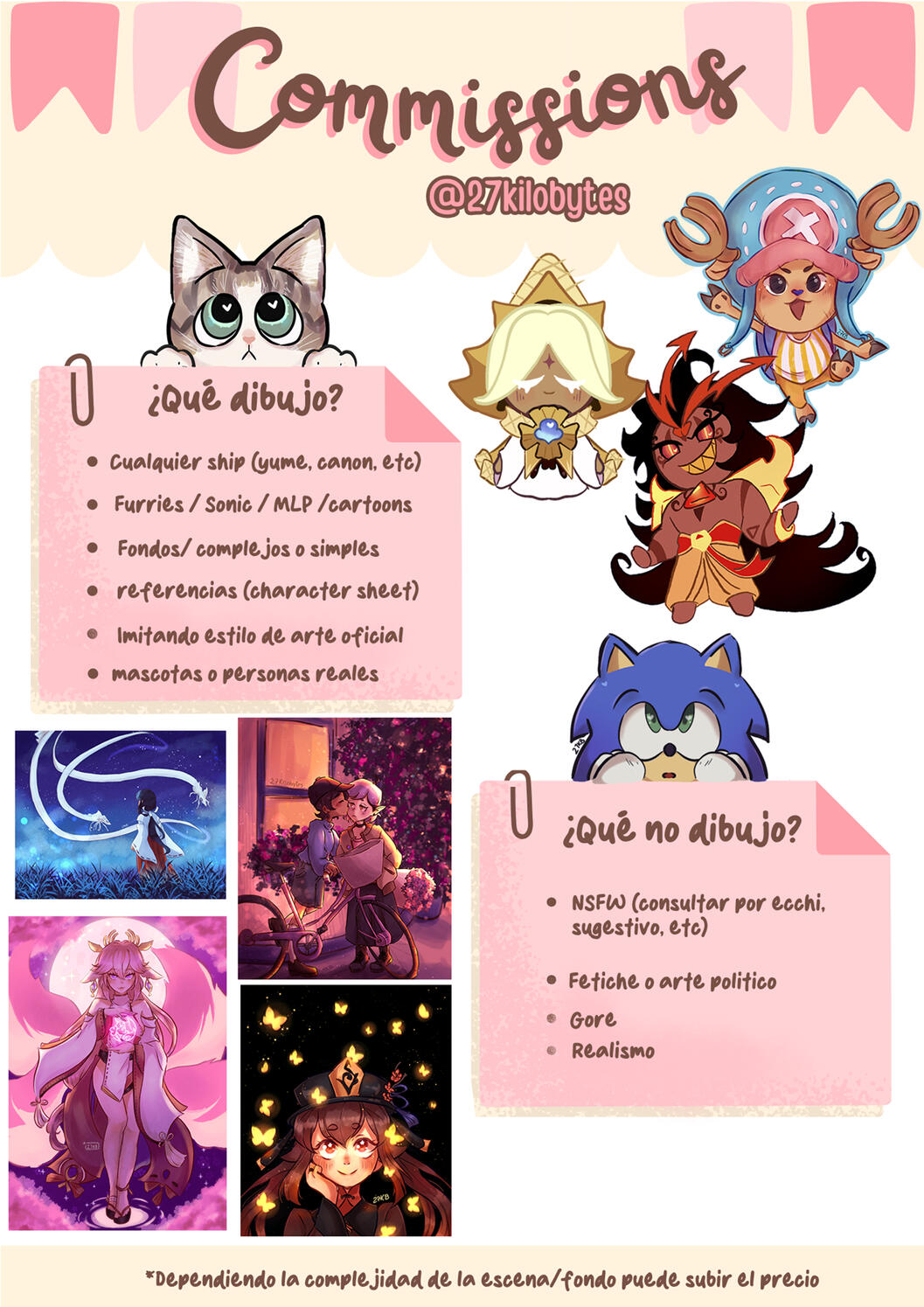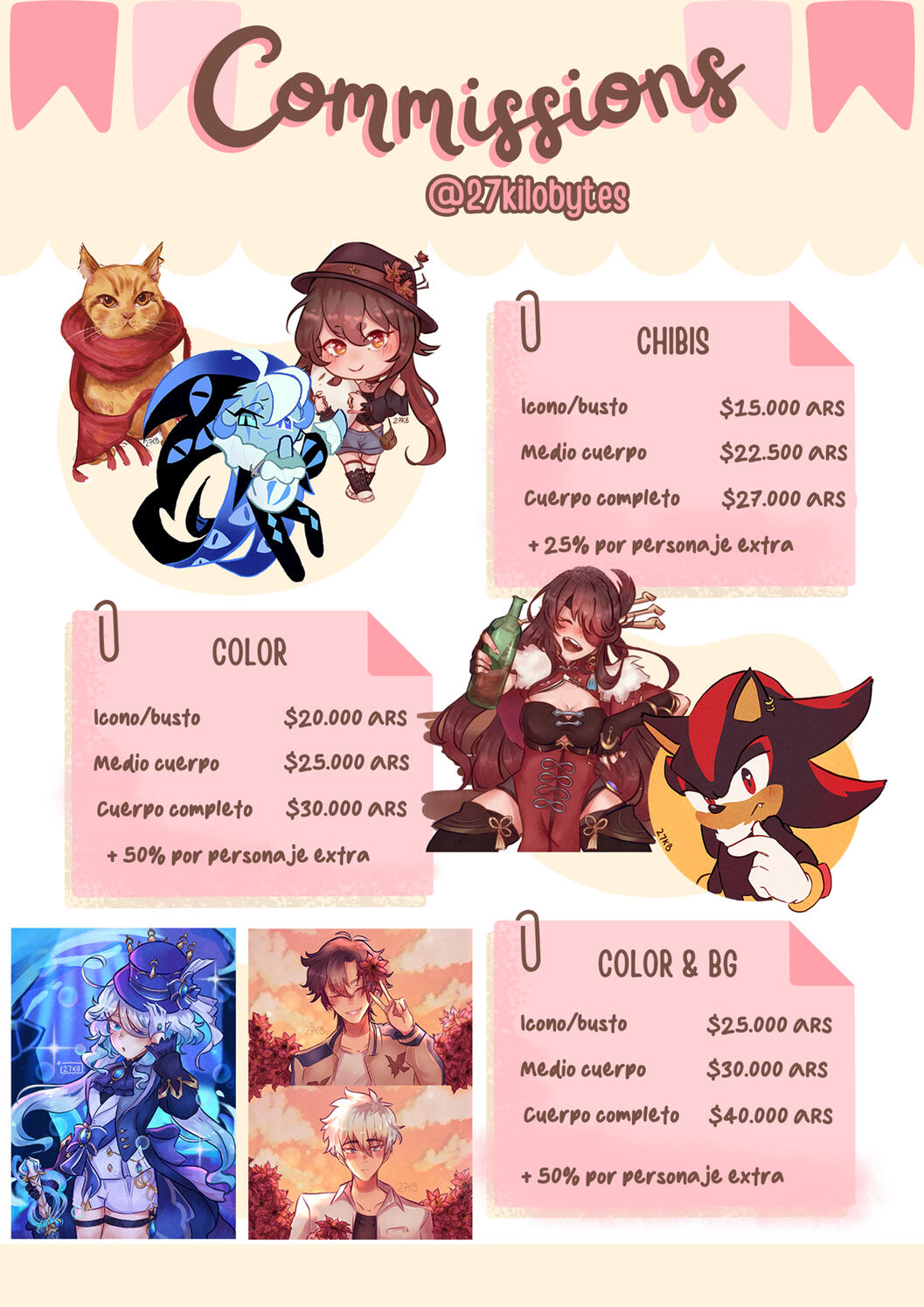 - Los precios NO son para dibujos con fines comerciales, consulta aparte por esos precios.